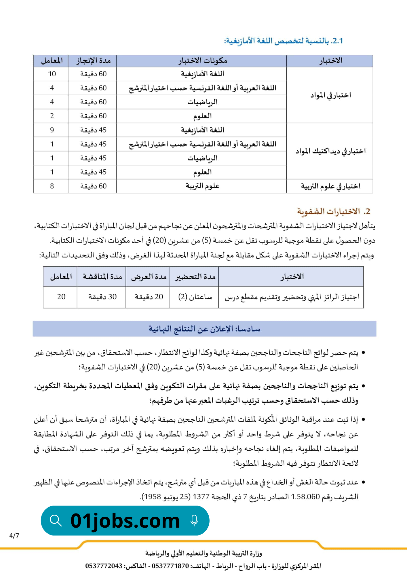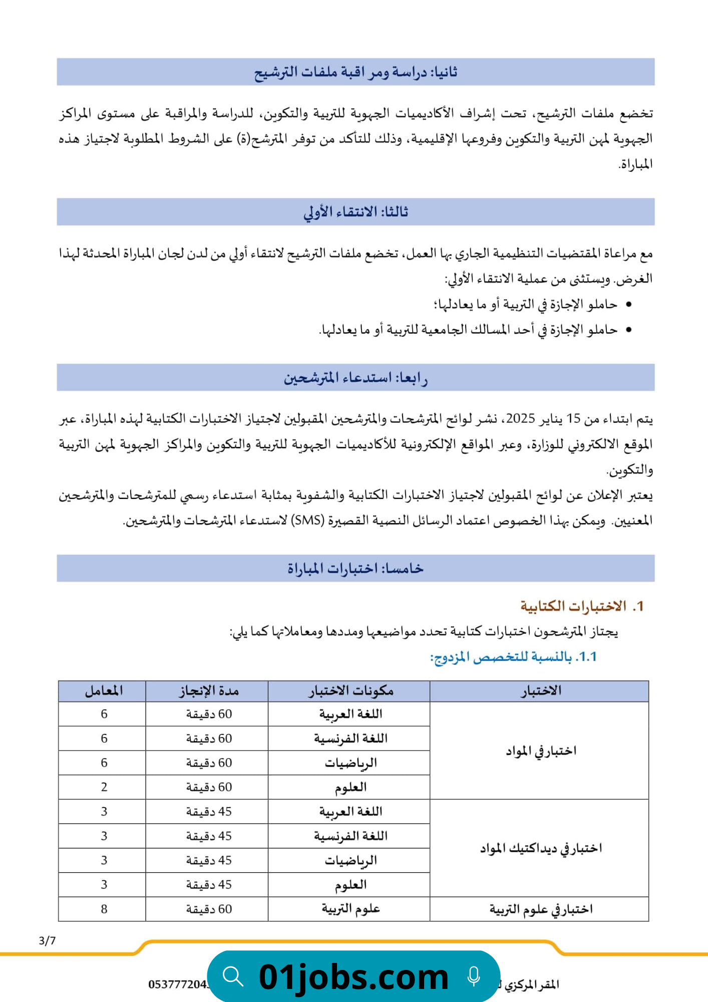 - مكان إجراء المباراة: المراكز الجهوية لمهن التربية والتكوين المعتمدة على مستوى مختلف المناطق.