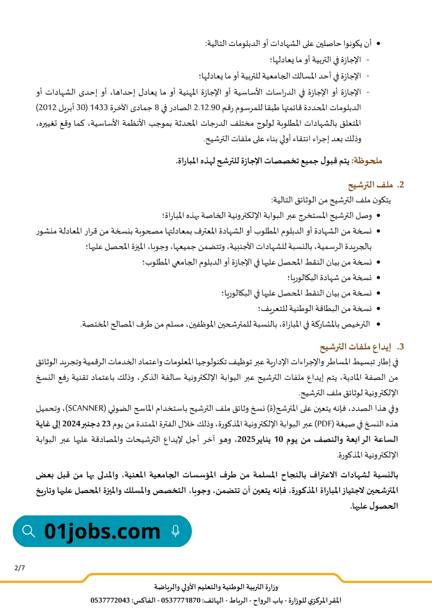 يجب على المترشحين التسجيل في مباراة التعليم 2025 عبر البوابة الإلكترونية الخاصة بالوزارة: https://wolouj.men.gov.ma.